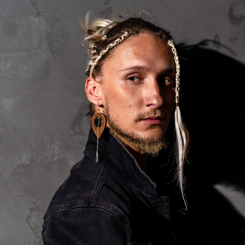 Cut in the shape of a location drop, each wooden earring is finely engraved with ‘Right Here Right Now’ and adorned with a delicate 24k gold chain with a completely unique Clear Quartz point threaded through it. These lightweight statement dangles celebrate the wearer exactly as they are, wherever they may be, as they constantly point to the earth in a dance with gravity and you.