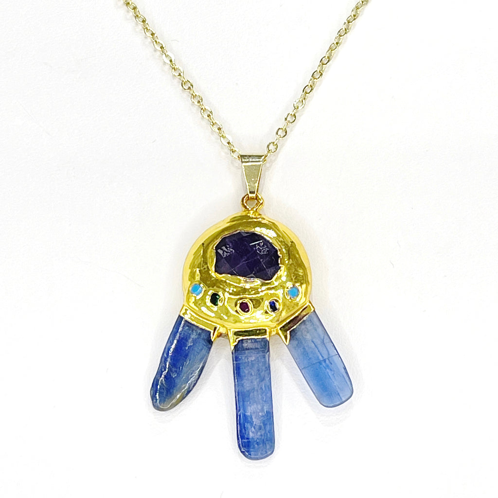 Kyanite & Amethyst Star Catcher Pendant in Gold